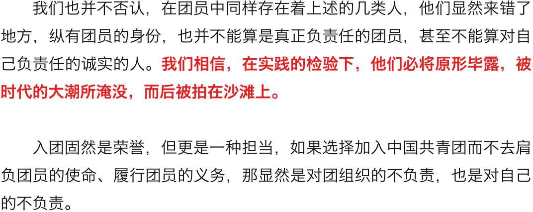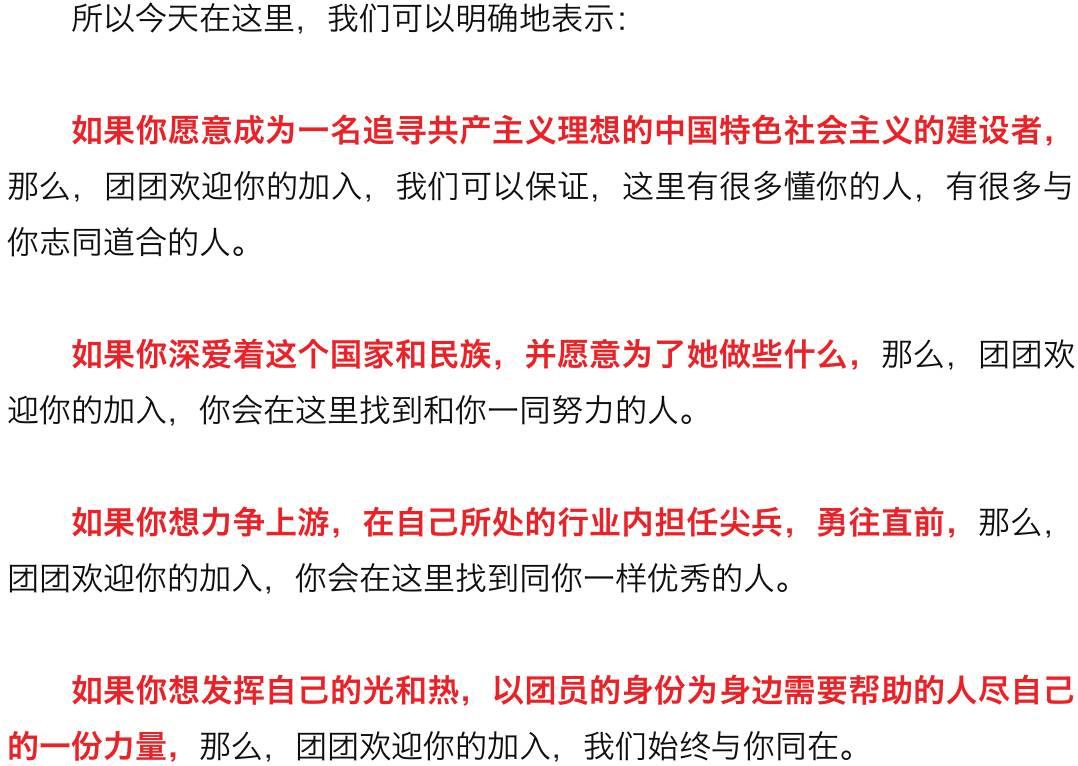 1.如果你目前对共产主义和中国特色社会主义并没有什么兴趣,甚至将其作为反对的目标,那么,共青团不适合你,我们也暂时不欢迎你。