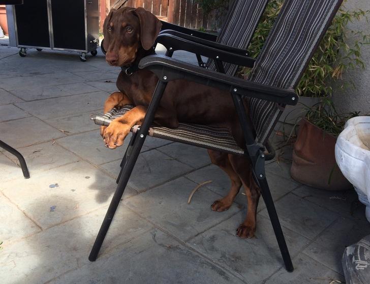 狗:笑什么笑,我不是卡着了,我就喜欢这样坐不行么