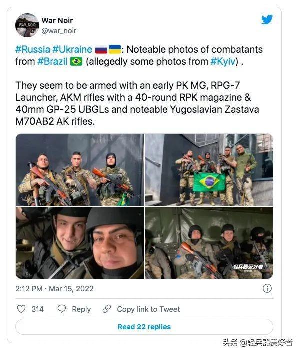 我们也看到了装备AKM步枪的士兵。目前这些装备已装备了领土防卫部队和一个在社交媒体发布图文的巴西志愿者武装。