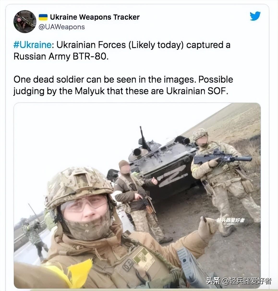 在乌克兰社交媒体中,我们看到了他们缴获的Ak-12等一些武器。这张照片,乌特种部队在俄罗斯的战车上照相。