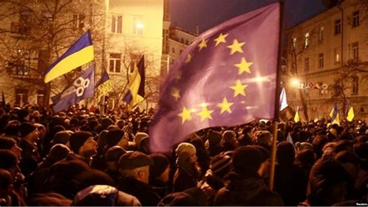 2013年11月,乌克兰首都基辅爆发了大规模的亲欧盟示威运动。示威运动持续数月,并漫延至乌克兰全境,演变成乌克兰亲俄派与亲西方派的互相示威游行,最终发展成武装冲突。