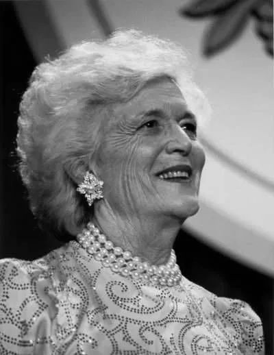 在竞选活动中,芭芭拉强调自己关注教会、园艺和家庭,而非流行时尚,她也亲身实践了自己的这一主张,芭芭拉是一个可以戴假珍珠饰品、喜欢吃墨西哥卷饼外卖、穿着浴袍遛狗和拿自己开玩笑的人。她的白发和庄重仪表,符合民众对老派祖母的想象,尽管她比丈夫小将近一岁,但很多人认为她看上去比她丈夫大得多。在老布什出任美国第41任总统的就职典礼上,她一头白发和佩戴了一串仿珍珠项链出席丈夫就职典礼。