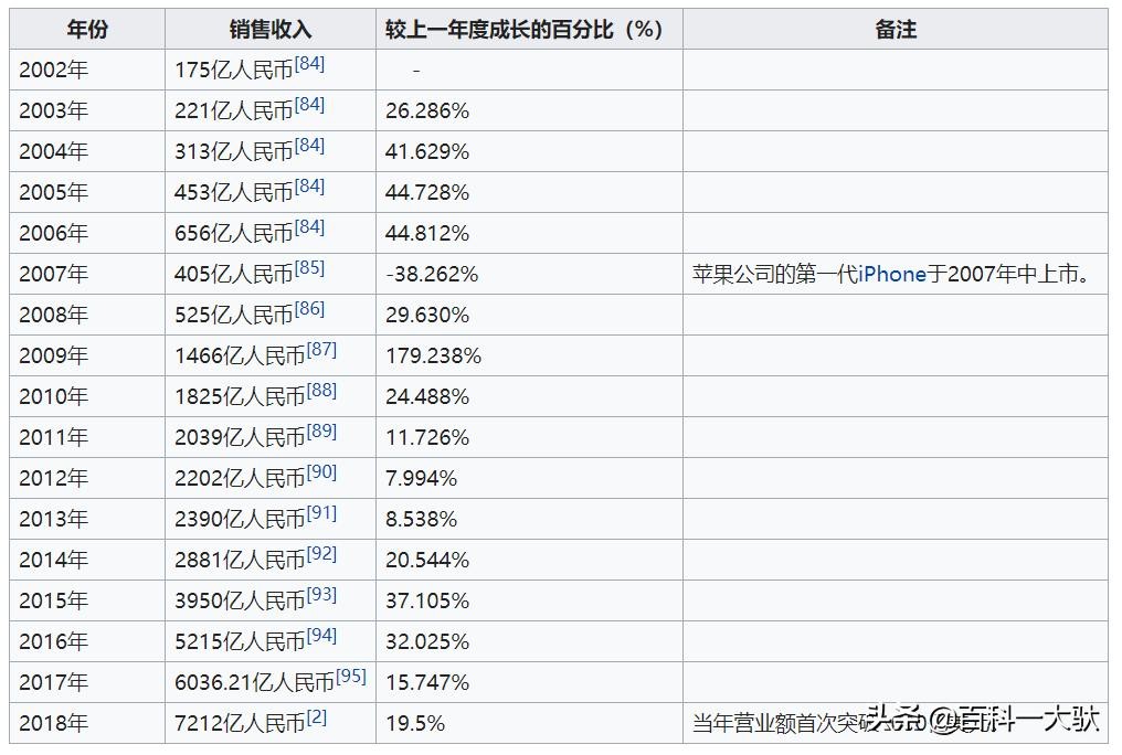 华为近年销售