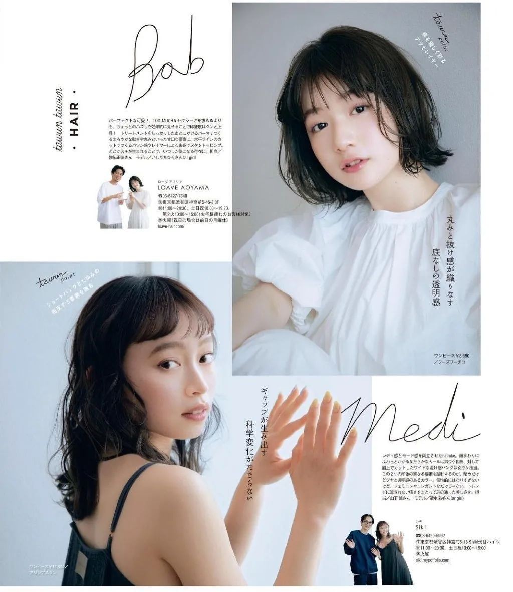 内扣波波头搭配及眉长度的刘海,不仅甜美可爱更是可以很好地的修饰脸型,而巧克力色发色的搭配更是让皮肤看起来白嫩很多,非常时尚耐看。