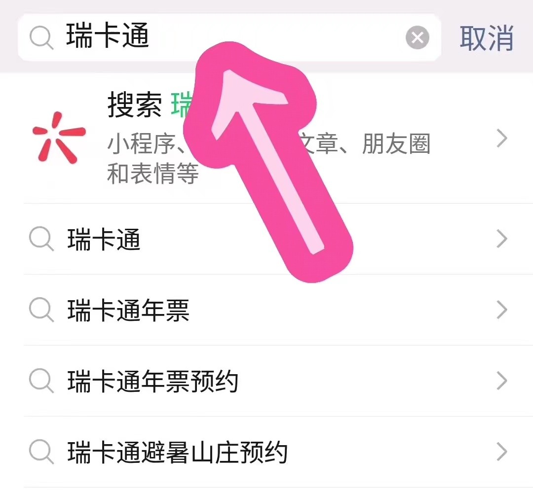 打开微信,点击右上角的【放大镜】搜索栏里输入【瑞卡通】