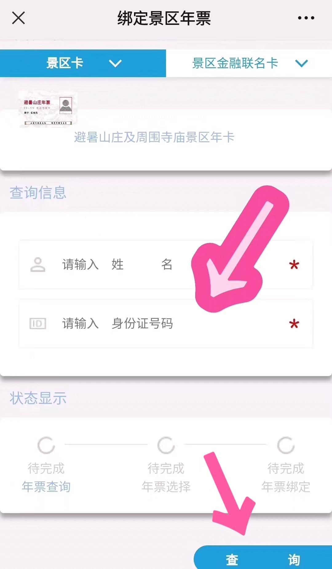输入您的姓名和身份证号码,点击【查询】,然后点【绑定】
