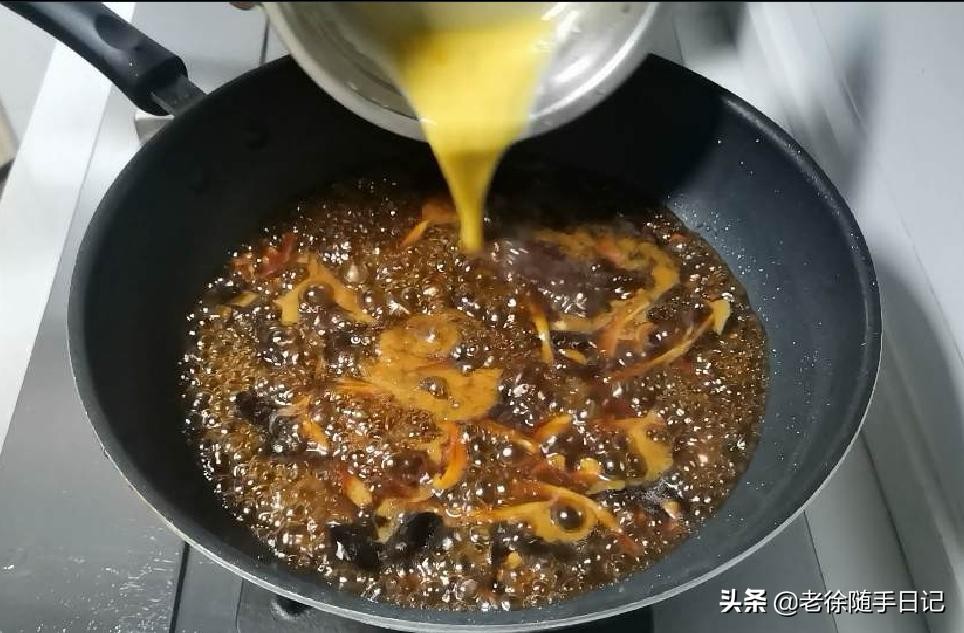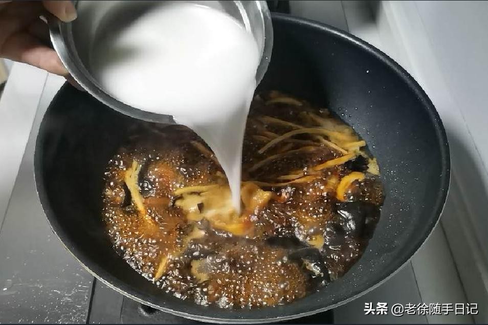 烧开后加入水淀粉勾芡,水淀粉一定要分多次加入,直至卤慢慢的变粘稠