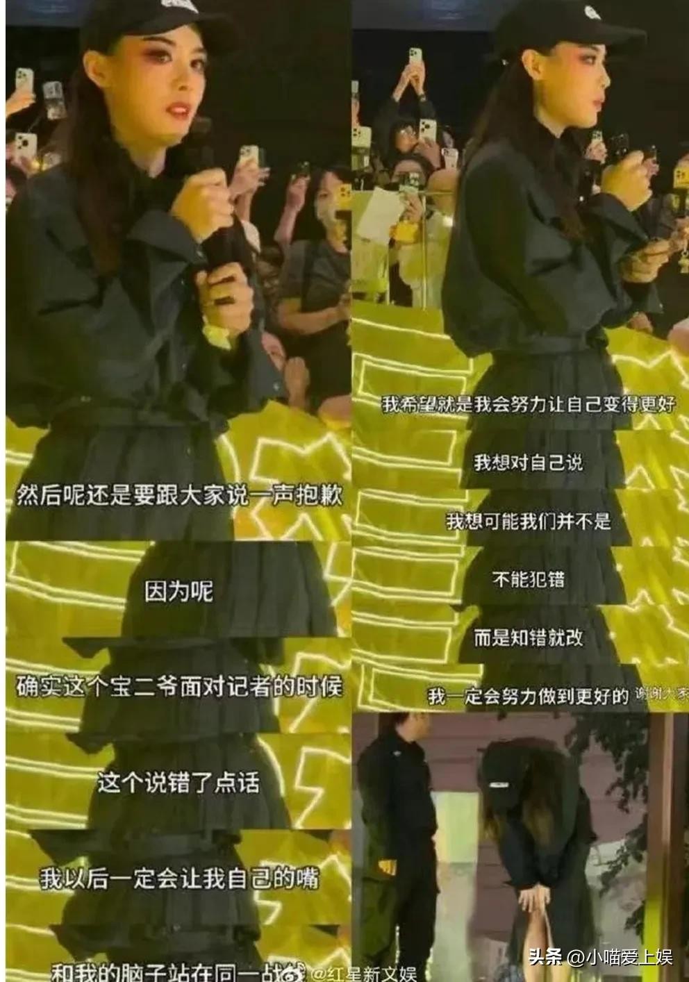 但更绝的是她的道歉现场!在返场演出时直接泪洒舞台,鞠躬认错说:"以后绝对让嘴和脑子同步!" 这波真诚杀让网友集体破防,有人喷她没文化,也有人挺她是真性情!!!