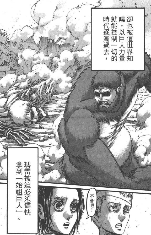 就在救下艾伦却即将团灭之时,艾伦接触到了吃了他妈妈的那个巨人,是有王族血统的女巨人,也是艾伦的“前妈”,发动了“始祖巨人”之力,命令所有的无垢巨人攻击铠之巨人,还是在尤弥尔的帮助下才没有被吃掉