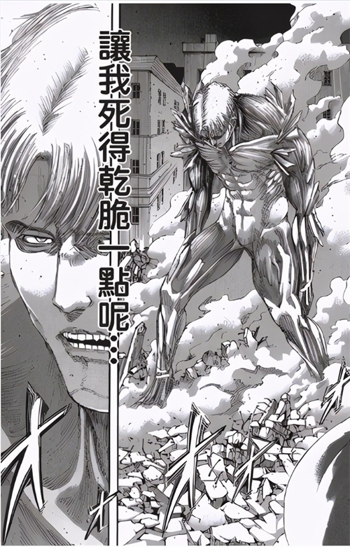这次的战斗是被针对了,先是差点被利威尔秒杀,然后专门对付铠之巨人的神器“雷枪”登场,被众人的雷枪打得命悬一线