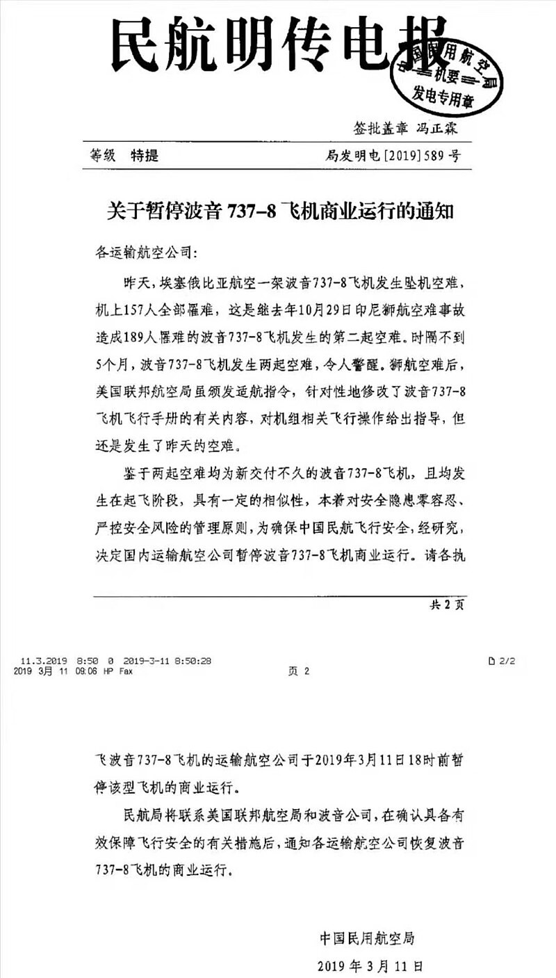 2. 埃塞俄比亚航空302号(2019年3月10日)