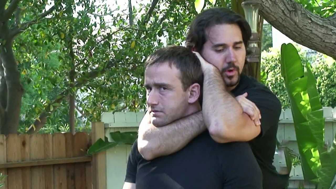 正确的做法,在被勒住脖子的时候,第一应该尽量稳住重心不要被人拖倒,同时涨粗脖子,下颌尽力往喉结处收,这可以延长窒息时间。第二选择后退,后退的时候想办法踩住对方的脚,然后顺势倒下压住对方,这样手可以顺势后摸,直捣黄龙,抓到关键部位狠捏一把就行了,如果是女的,也可以拧大腿。(当然我觉得这种时候就别在意性别了……管他的,回首掏就对了!一击必破!)