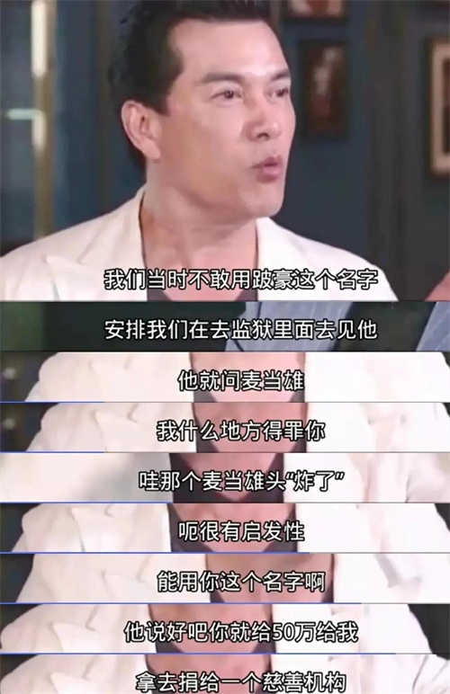 当天,麦当雄带着主演吕良伟一起去狱中探望“跛豪”,结果两人一看到“跛豪”,就被他的强大气场给镇住,毕恭毕敬的站起来说:“豪哥,你好,你好!”