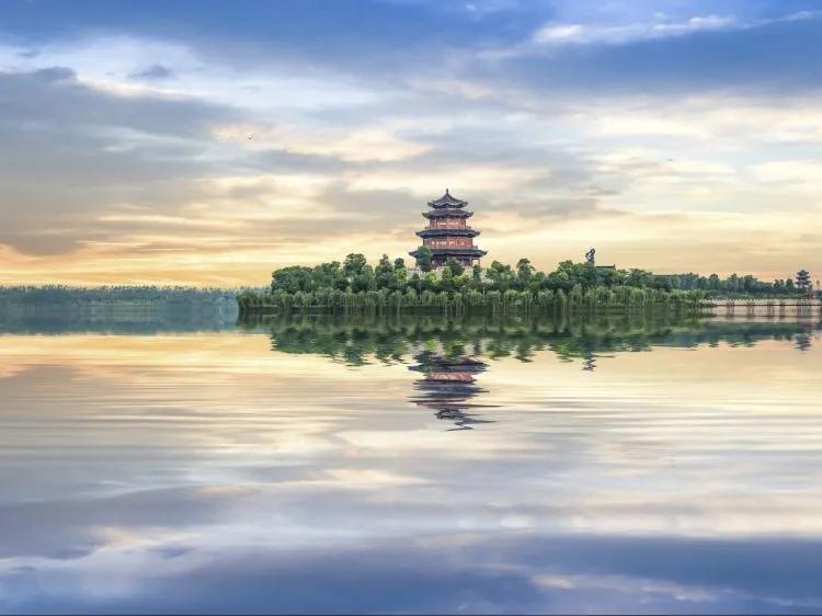 梦湖景区:“细柳含烟迎翠色,浮觞戏水弄晴晖”
