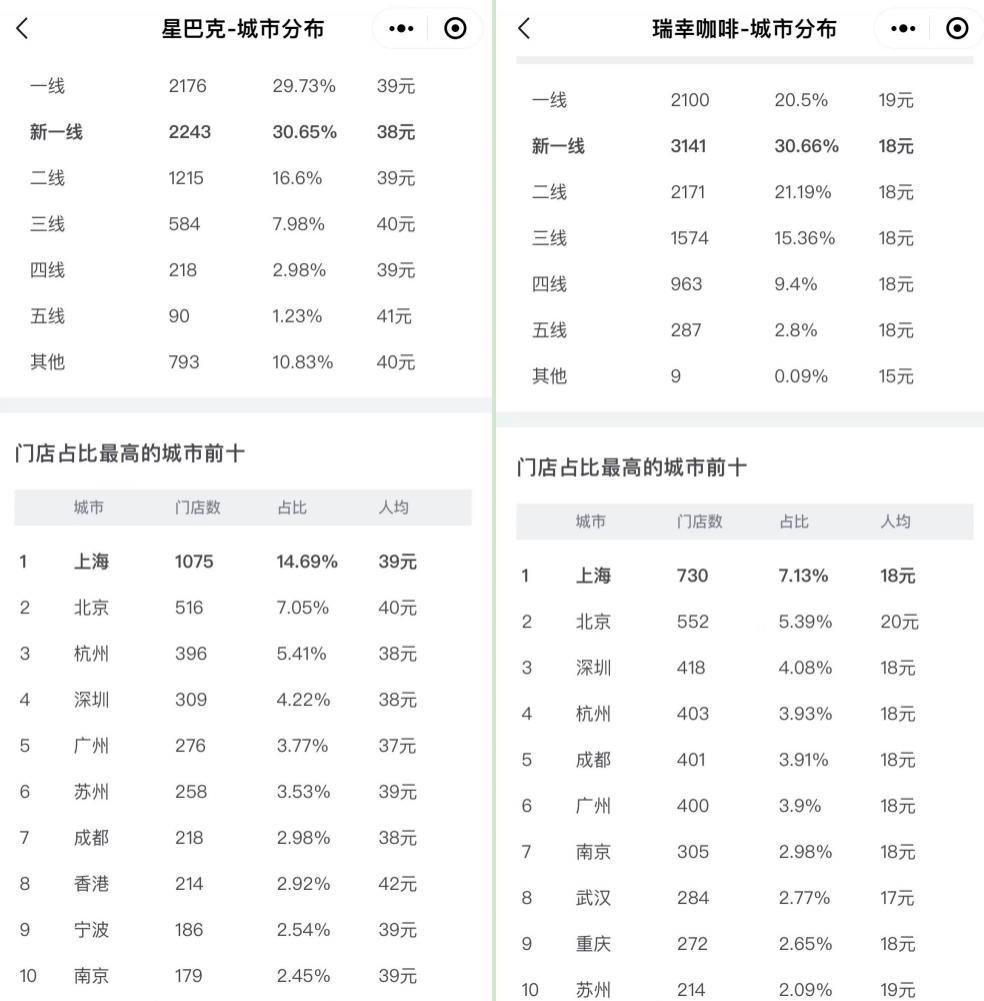 但星巴克的购物中心店却达到了近 50%,受制于 " 第三空间 " 和直营的定位,星巴克只能采取较为保守的开店策略,如今近 80% 的星巴克门店仍分布在一二线城市,这导致其下沉动作也一直无法快速展开。