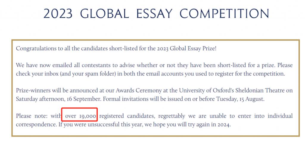 今年 John Locke 的参赛人数高达 19000+,比去年的两倍还多,再次祝贺所有入围 2023 John Locke 全球论文竞赛 Shortlist 的同学,也期待大家决赛获奖的好消息。