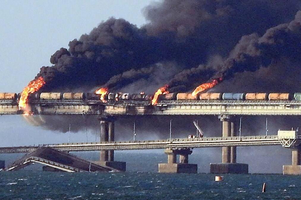 去年 10 月,克里米亚大桥遭袭击 图片来源:央视新闻