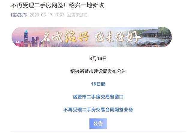 浙江一地公告:不再受理二手房网签业务,工作人员回应