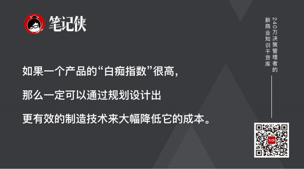 如果一个产品的 " 白痴指数 " 很高,那么一定可以通过规划设计出更有效的制造技术来大幅降低它的成本。