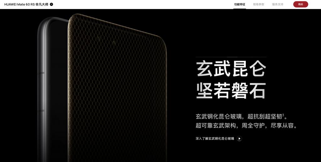 当然,消费者最关心的还是屏幕,在华为 Mate50 系列上市时,第一代昆仑玻璃就以其强劲的抗摔、防刮性能得到业界好评,而到了华为 Mate60 系列,在此基础上对玻璃配方进行了迭代升级,第二代昆仑玻璃采用了强度更高的玻璃网络骨架,辅以复合离子强化技术,有效防止外屏在受外力挤压时变形或破裂,比上一代的整体耐摔性提升了 1 倍。而高端机型华为 Mate60 RS 非凡大师更进一步,搭载全新玄武钢化昆仑玻璃,让防护更全面、贴心。