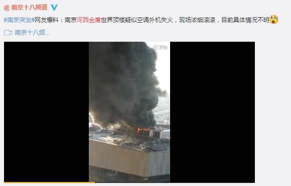 【网友爆料】南京河西金鹰世界顶楼疑似空调外机失火,现场浓烟滚滚,目前具体情况不明。