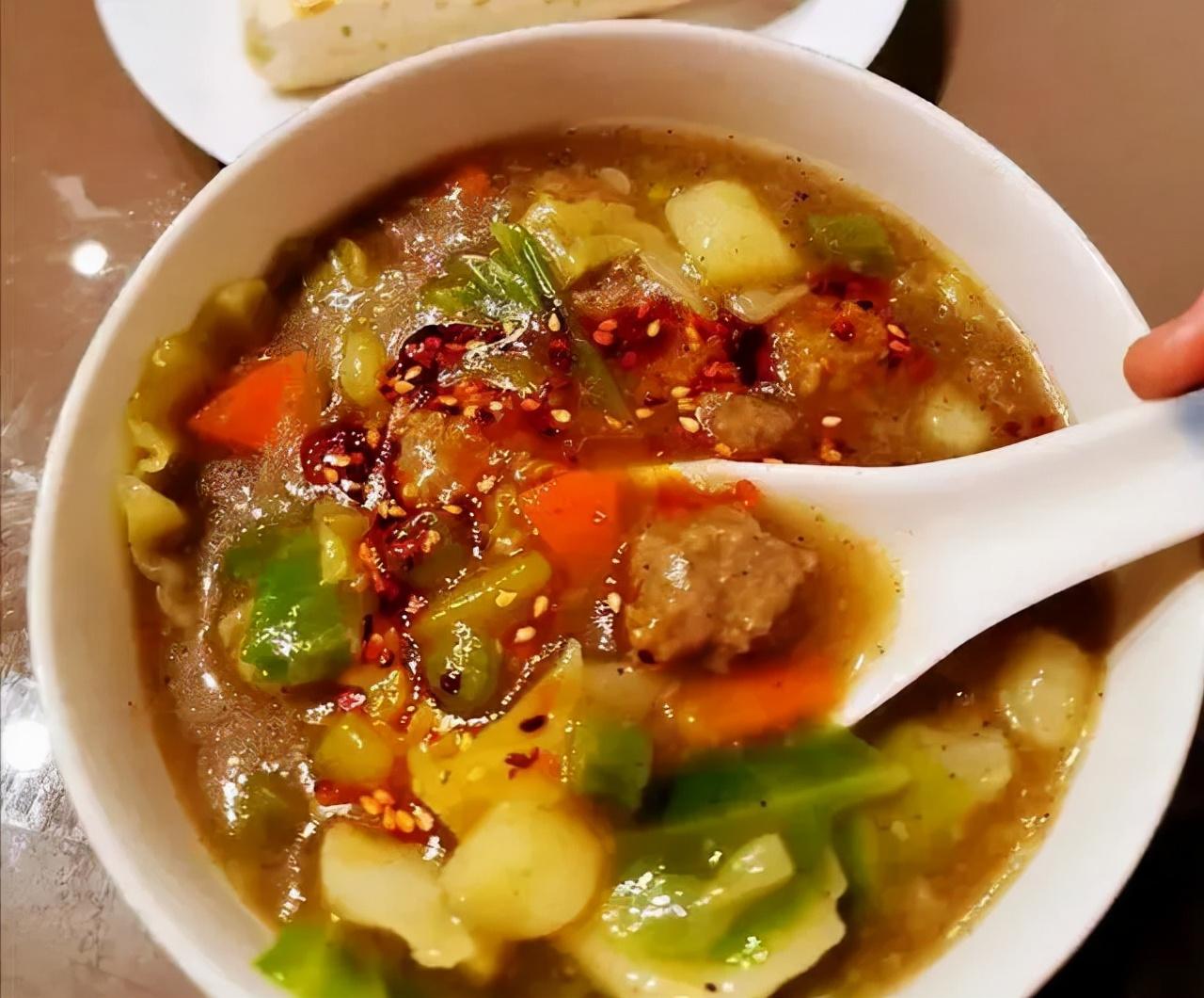 说起胡辣汤就会想起河南的正宗的逍遥镇胡辣汤,与陕西的肉丸胡辣汤相比,两者各不相同。肉丸胡辣汤是本地名吃,制作原料主要肉牛肉、土豆、莲花白等,再配以烙饼,营养丰富,汤汁浓浓,味道鲜美,香辣适口。