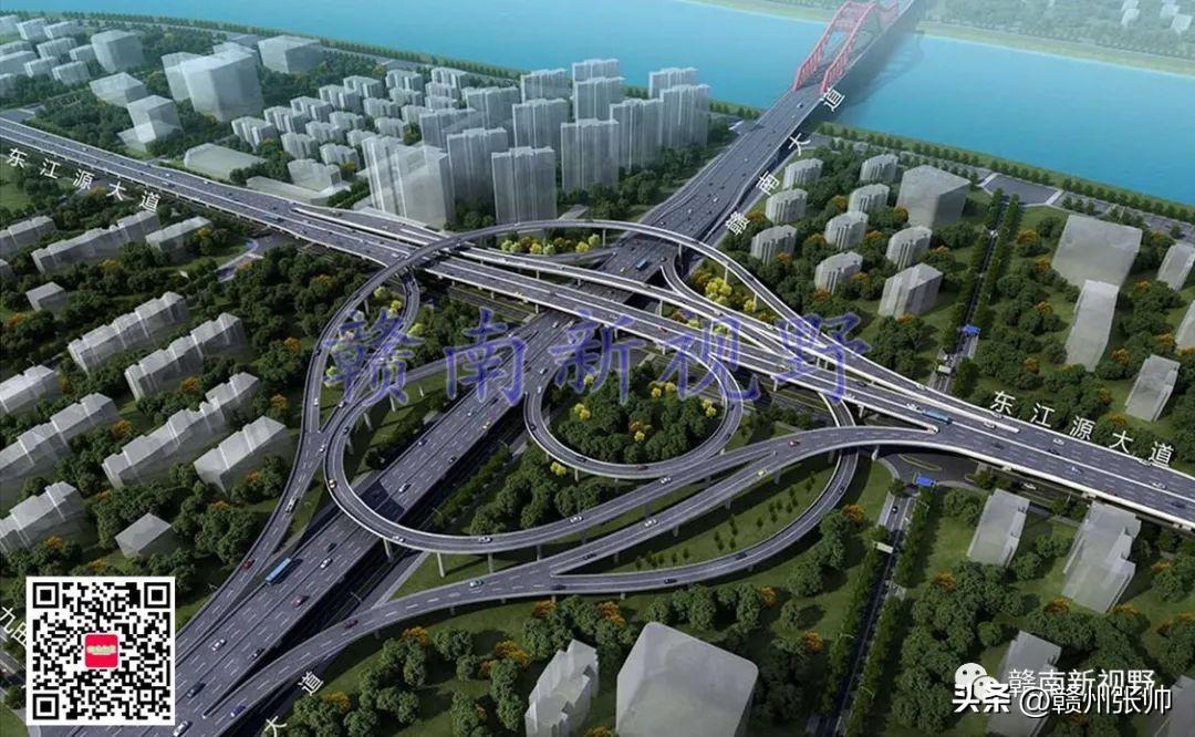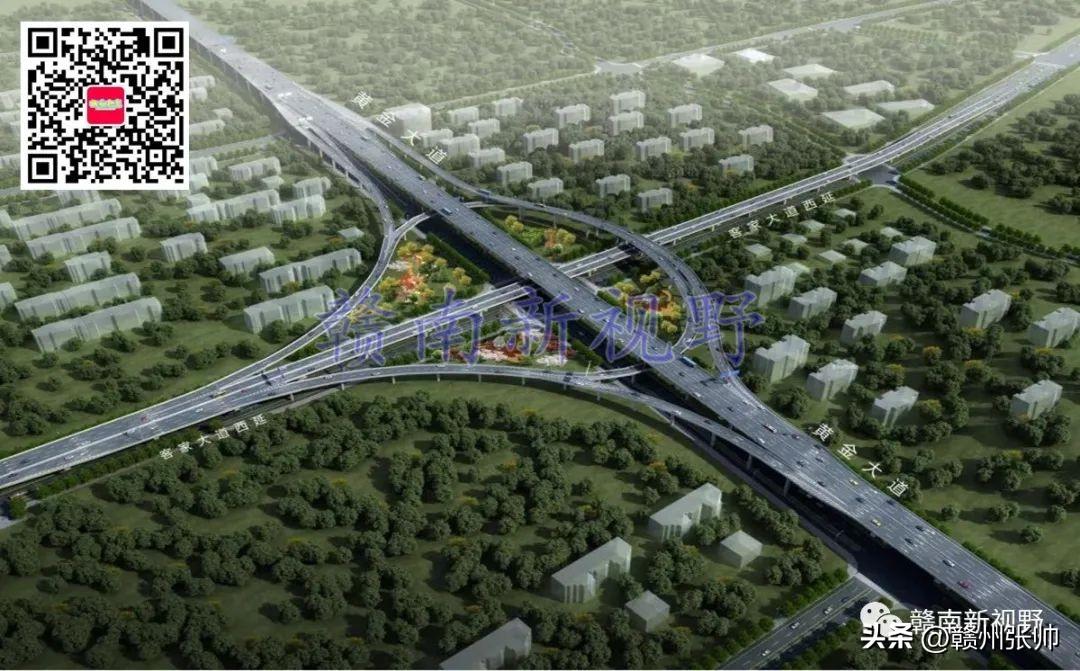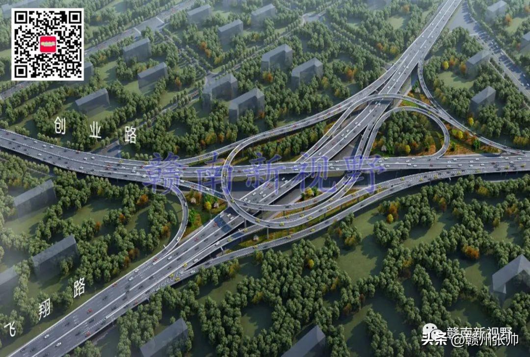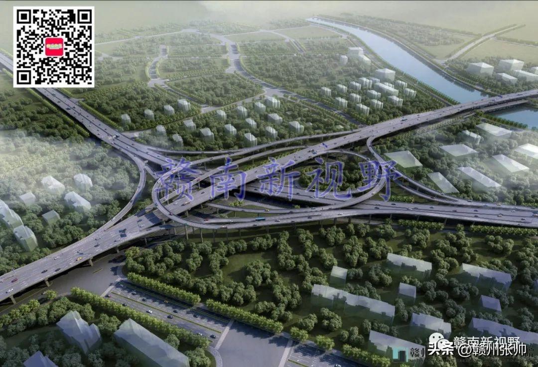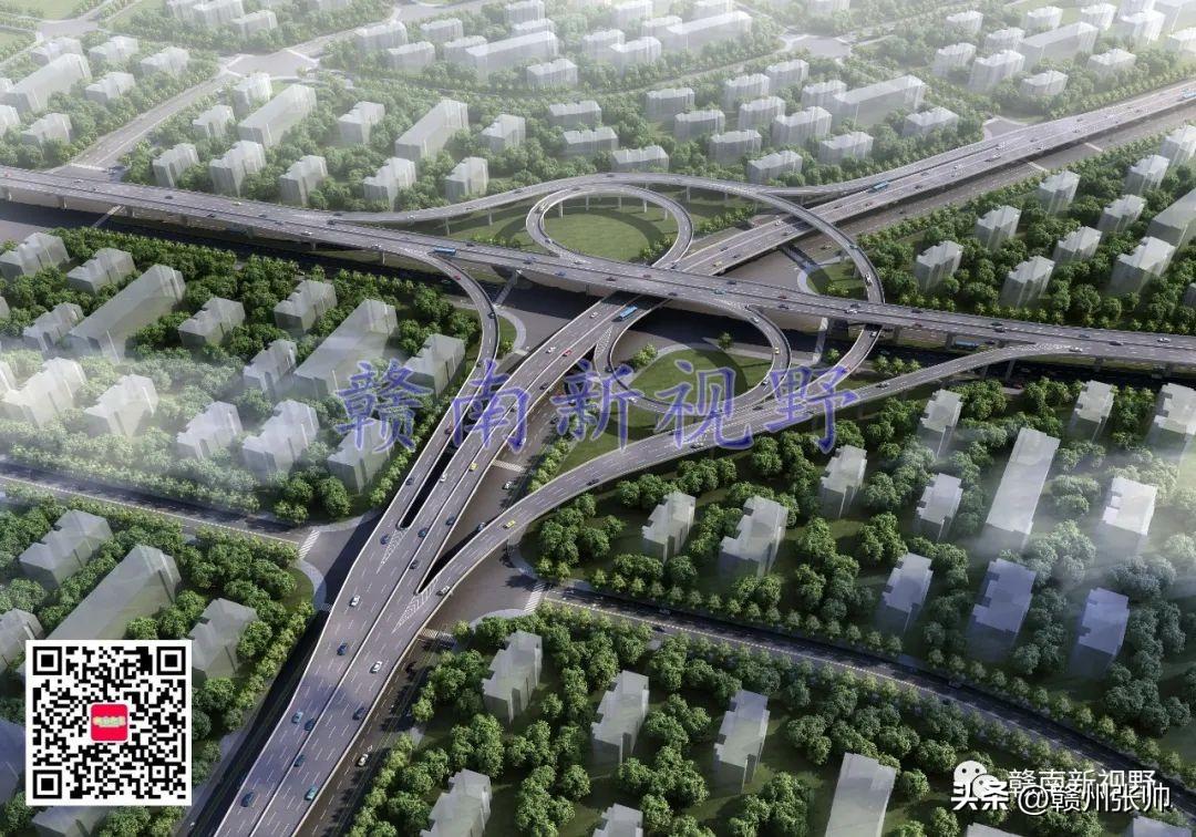 将赣州市中心城区部分快速路高架立交桥效果图放置赣州市中心城区快速路路网中,微信公众号文章会对图片进行压缩,下面这张图放大后可能会看得不是很清楚。