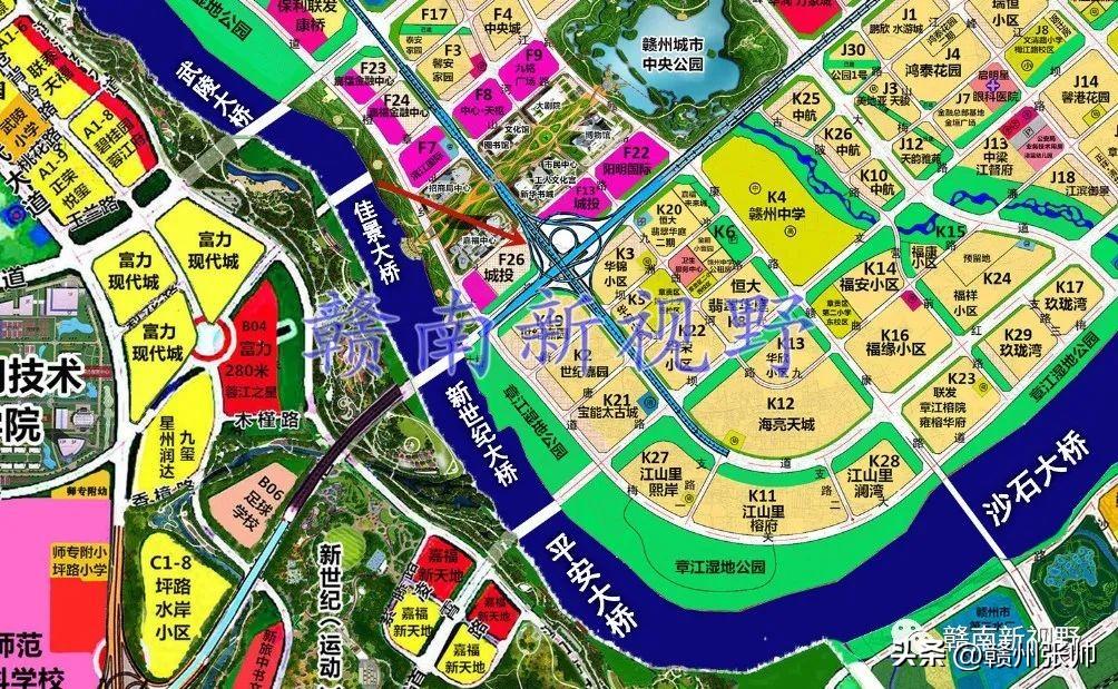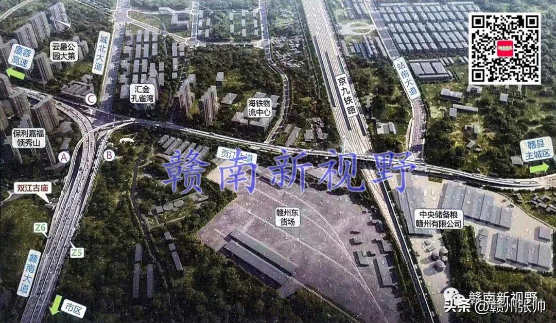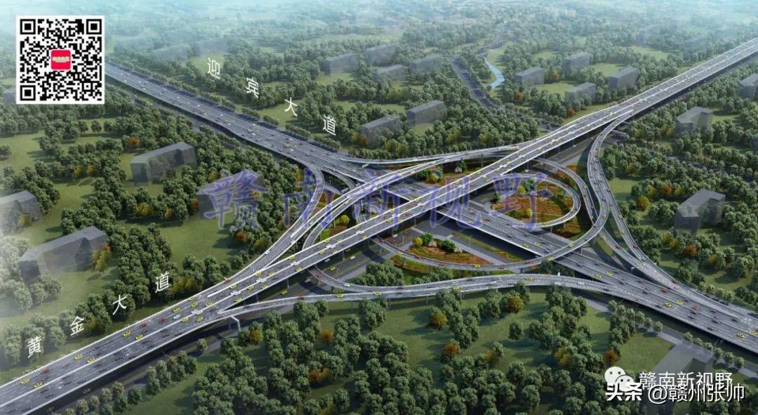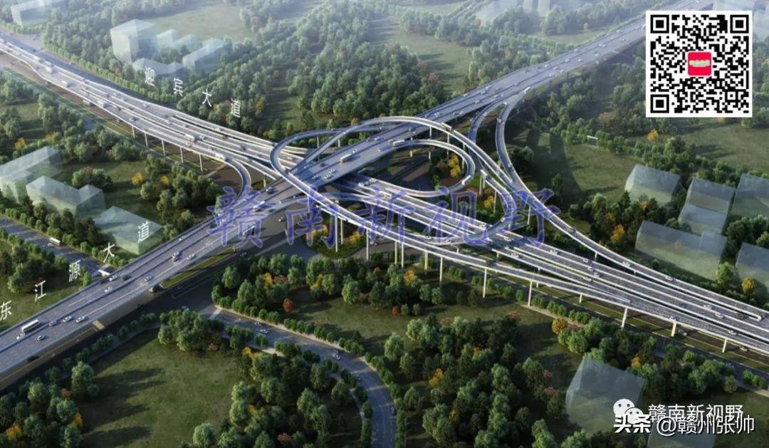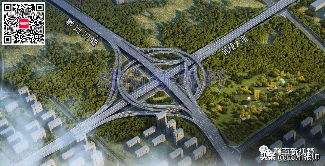 将赣州市中心城区部分快速路高架立交桥效果图放置赣州市中心城区快速路路网中,微信公众号文章会对图片进行压缩,下面这张图放大后可能会看得不是很清楚。