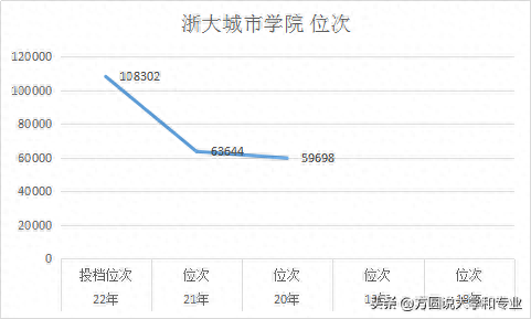 从20年到22年,浙大城市学院的录取分数一路下跌,到了22年,已经跌到了10万位次,也就是一本线上9分!