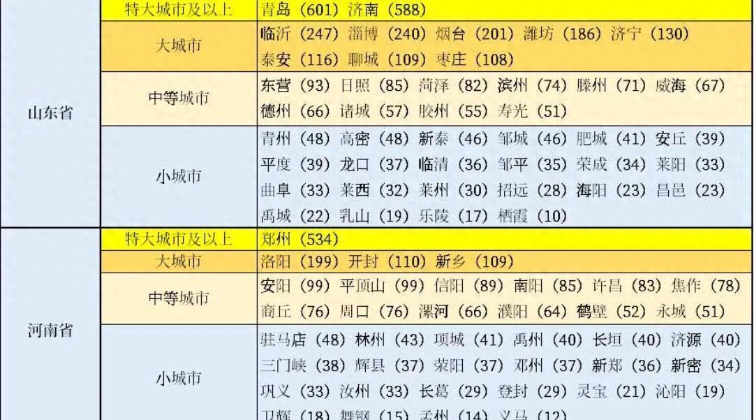 除了青岛之外,济南市的城区人口也突破500万人,达到588万人,进入特大城市行列,不愧是山东省省会,近几年的发展有目共睹。而除了青岛和济南两个特大城市,山东省还有八个大城市,但是因为城区人口都在300万人以下,全部都是Ⅱ型大城市。在未来,临沂和淄博这两座城市还是很有机会升格为Ⅰ型大城市。