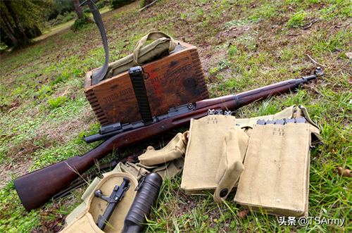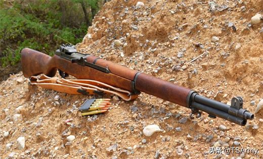 M1加兰德是二战期间美军大量装备的一种半自动步枪,在上世纪二十年代期间研制,三十年代中期开始列装,该枪发射7.62x63毫米斯普利菲尔德步枪弹药,采用8发一次性弹夹供弹,每当打到最后一发时,还会出现“叮”的一声将弹夹弹出,这个也是M1加兰德半自动步枪的一大特色,该枪从三十年代一直装备到五十年代中期才被M14自动步枪取代。