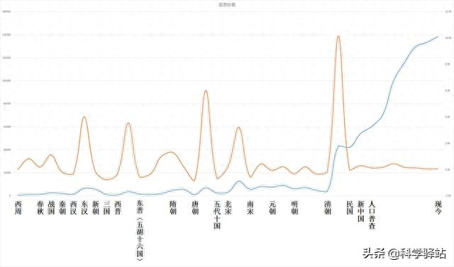 中国历代人口数量变化曲线
