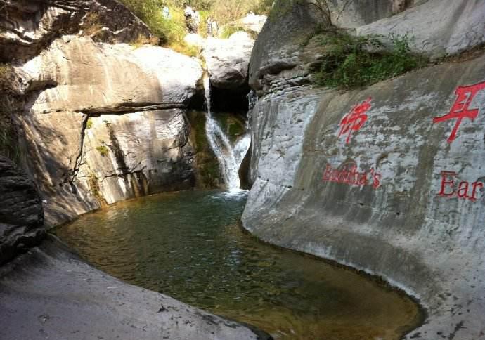 佛耳峡:是一个奇峰秀石、泉潭溪瀑为主的峡谷游览区。游览区窈窕峡长,蜿蜒曲折,犬牙交错,泉水叮咚,三潭九瀑,小桥流水,茂林修竹贯穿其中,好似一盆玲珑的盆景,它汇萃山川之灵气,浓缩天地之精华,大自然鬼斧神工造就了这幅绝妙的动感山水画廊。公鸡峰、母鸡峰、金龟望月、世界奇观石鸡蛋形态逼真,宛如天成。
