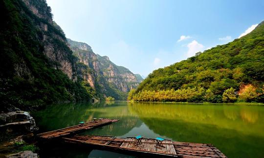 大泉湖:为青天河景区之精华。既有一川碧水之灵秀,又具幽谷深峡之奇观,其两岸林泉之美,峰峦之秀、洞壑之深、烟霞之胜实属罕见,故有“北方三峡”、“桂林山水”之美誉。大泉湖长7.5公里,宽80—100米,水深60余米,呈现出峡谷一线青天,烟波浩淼,巍巍壮观之景色,湖水主要来源于雄冠“华夏第一泉”的三姑泉。大泉湖中段十分酷似长江三峡中的巫峡,人称“北方三峡”。长江三峡以“山高、水险、湍急”而闻名天下,而“北方三峡”则以“水清、水静”而闻名。乘船途经此段,“两岸猿声啼不住,轻舟已过万重山”的感觉油然而生。有人说,青天河过于宁静与矜持。的确,她没有三峡的桀骜与狂放,但更多了一份三峡所没有的轻柔与内秀,“云青青兮欲雨,水澹澹兮生烟”,“山得水而活,得草木而华,得烟云而秀媚”,可见明山秀水造就了这仙境般的美景。大泉湖游览区不仅自然景观惟妙惟肖,形态逼真,而且在这永不褪色的青山绿水间,还流传着许多历史典故和神话传说,常让人流连忘返,寻踪追迹。主要景点有:九曲涧、世界独一无二的天然长城、三娘教子、卧鹰岩、骆驼峰、立驼峰、梦笔生花、睡美人、百鸟巢、石榴峰、鲸鱼湾、佛手岩等等。大泉湖:大泉湖长7.5公里,湖水主要来源于号称“华夏第一泉”。多雾季节,一座座秀丽挺拔的山逢出没于浓云薄雾之间,秀中有奇,幽奇相兼,极具阴柔之美,宛如中国山水画的立体长卷。
