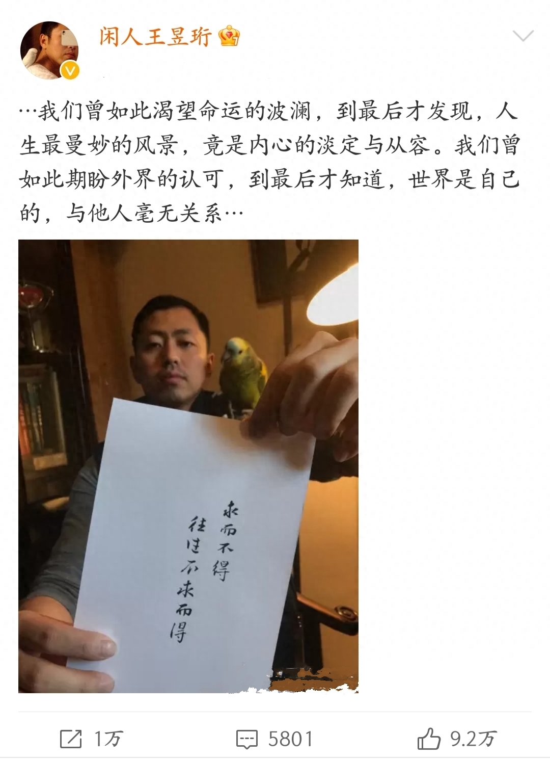 很快,王昱珩的退赛引起了一场风波,网友们甚至有些义愤填膺,但王昱珩依然宽慰大家,他在社交平台上这样说:“人生最曼妙的风景,竟是内心的淡定和从容”。