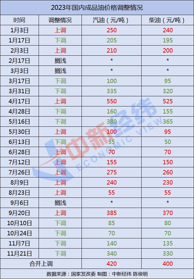 中新经纬梳理发现,国内成品油在今年已历经 23 轮调整,呈现 " 十涨十跌三搁浅 " 的格局,汽油价格累计上涨 420 元 / 吨,柴油价格累计上涨 400 元 / 吨。