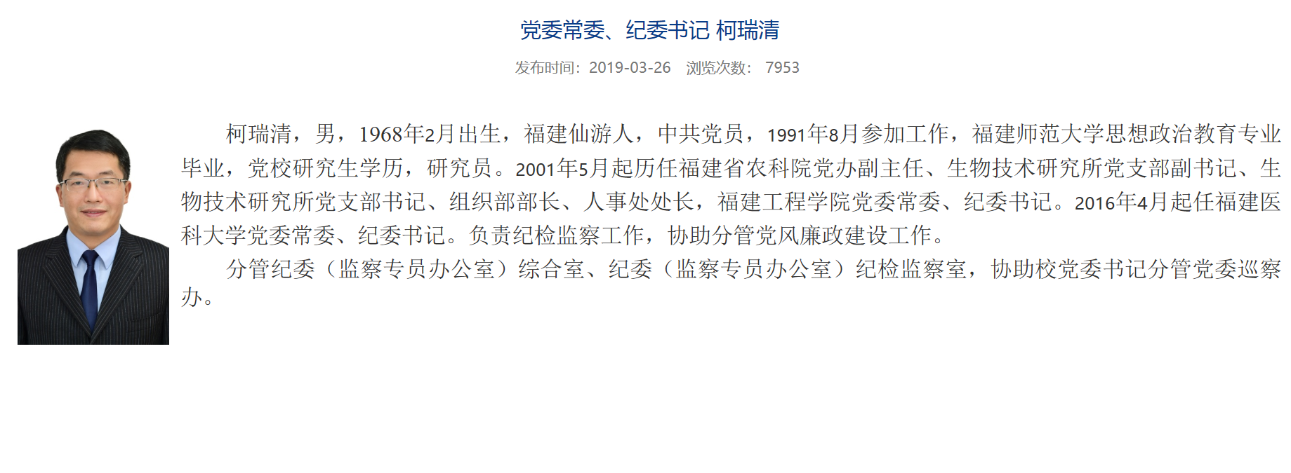 (福建医科大学党委常委纪委书记 柯瑞清)