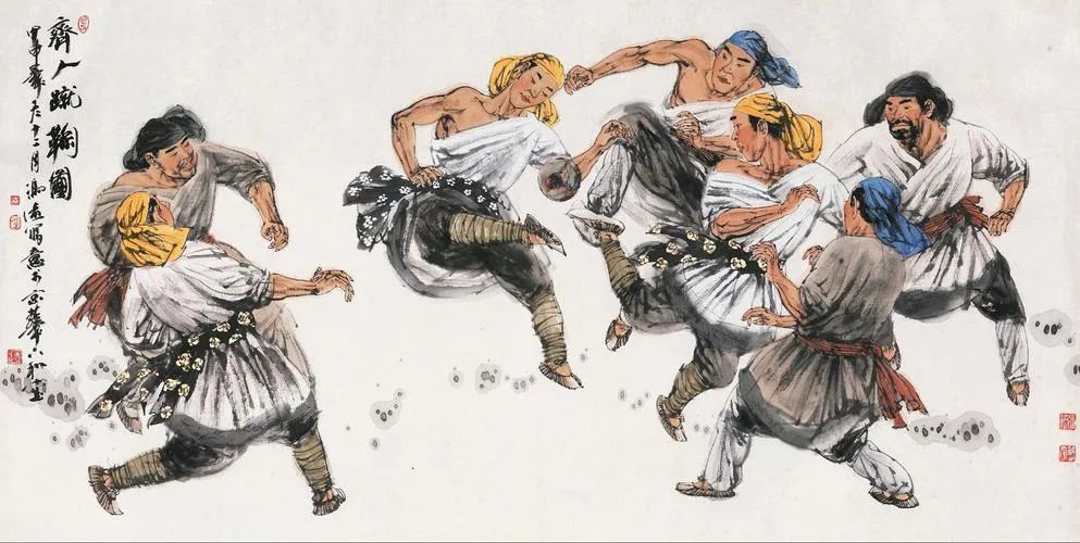 Cuju first appeared in the Strategies of the Warring States: “The city of Linzi is very wealthy and prosperous, and people here all play wind and string instruments,watch cockfighting and dog racing, and play Liubo chess and cuju.”This is evidence that cuju was quite a popular activity during the Warring States Period.