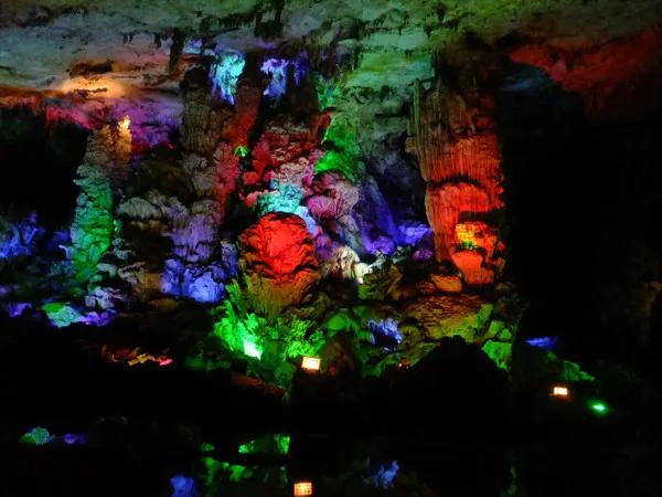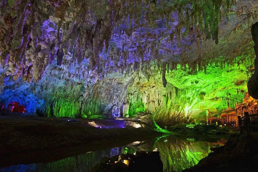金伦洞共穿越12座山腹,行程近10公里,洞内景观天然造化,形态万千,幻象无穷,各种石柱、石花、石乳和石笋构成了雄伟壮观的十里画廊。洞内长达1.5公里的“天河倒影”堪称世界一绝:观赏洞顶长出的石笋石乳在水中的倒影,让人有如飞越北国,遥望大地冰峰雪原绵延千里。