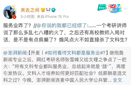 文科都是服务业?张雪峰再引文理之争,专家:言论过于极端