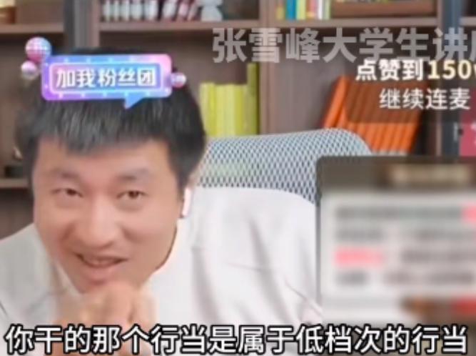 随后张雪峰还称:" 自己从事的也是服务业,我是用我的专业性来舔我们直播间每一位家长,但是没办法,千万不要为了一时对于院校的档次认知,而让自己一辈子都干这种舔人的行当。"