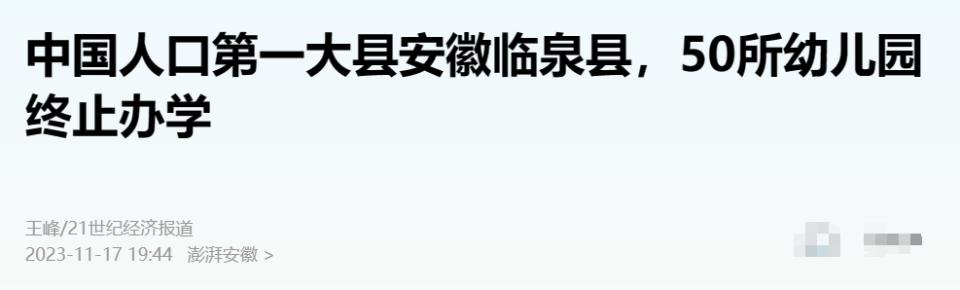 一个人口大县,一次性关闭了 1/10 左右的幼儿园,影响可想而知,遑论只有数十万人的小县?