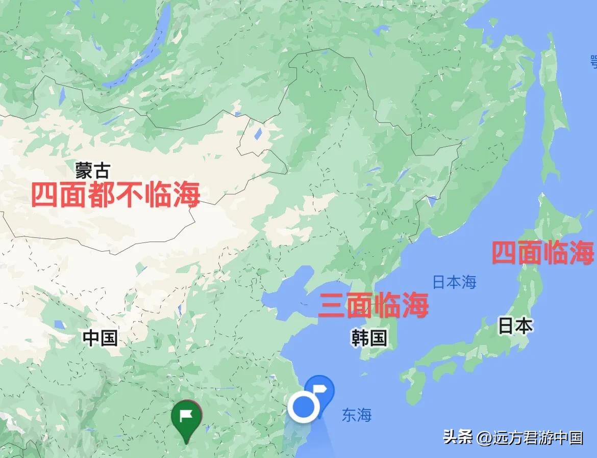 我国是位于亚洲东部、太平洋西海岸的,拥有漫长海岸线的沿海国家。背靠世界最大的大陆亚欧大陆,面朝世界最大的大洋太平洋,地理位置十分优越。同是东亚国家,日本是岛国,四面临海。韩国是半岛国家,三面临海。而蒙古国,四周都被陆地包围,没有一面临海,所以它是内陆国家。