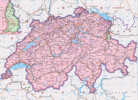 瑞士是“瑞士联邦”的简称,地处欧洲西部地区,是一个中欧国家,从经纬度位置来看,瑞士的经度范围大约介于东经5°至东经10.5°之间,属于东半球,从时区来看属于东一区;瑞士的纬度范围大约介于北纬46°至北纬48°左右,地处北半球,属于中纬度,从纬度热量带来看,属于北温带。瑞士北部与德国相邻,南部与意大利接壤,西部与法国相接,东部与奥地利和列支敦士登为邻,瑞士的总面积约为4.12万平方千米,大约是我国重庆市面积的一半左右。