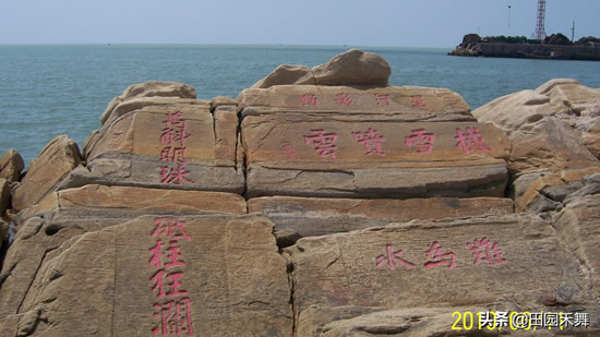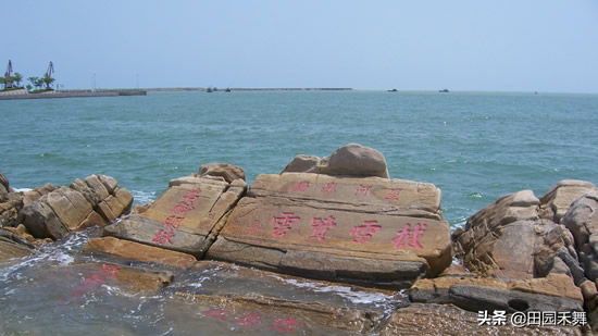 ▲海上碑,是全国是唯一保留下来的明末清初的海上摩崖石刻,已有近400年的历史。涨潮高潮时,部分碑刻没入海水中;落潮低潮时,碑刻露于海滩上,你可以清楚地看到碑刻内容:东部竖书,“万斛明珠”、“砥柱狂澜”,为明末礼部尚书王铎所书;西部横书,“星河影动”、“撼雪喷云”为明末监察御史苏京所题,“难为水”为清代安东卫守备阎毓秀所书。