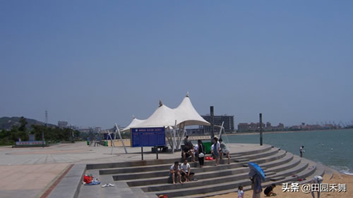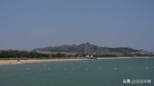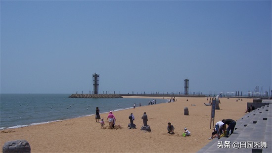 ▲岚山海水浴场有国内不多见的南向海滩,这里滩缓沙细、水清浪静,是夏季休闲游泳、旅游度假的好地方。从岸边远远望去,可以看到东、西两个潮汐塔,北面的风帆广场正在整修中。