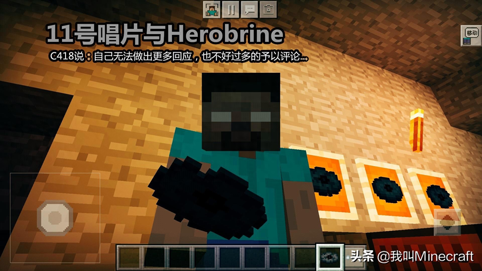 当11号唱片出现之时,又掀起了一阵轩然大波。《我的世界》几乎所有的玩家,都认为。这张唱片与传说中的Herobrine有关,它记录了一名矿工在挖矿时遭到Herobrine的追杀。于是有人便质问11号唱片的作者——C418.