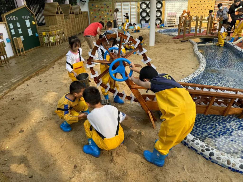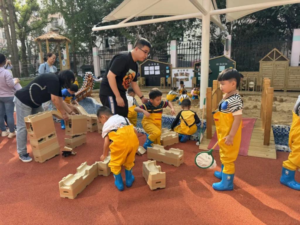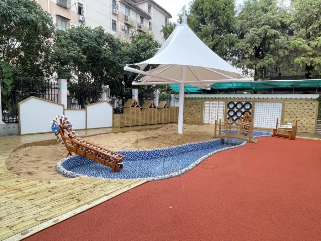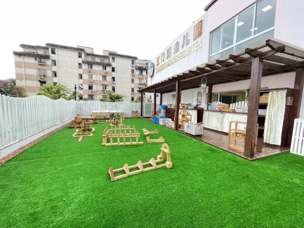 就在 2023 年暑期,幼儿园已完成了 " 一教室一单元 " 和户外新建沙水池、种植园等园舍改建项目,放大幼儿自主空间,减少活动等待时间,确保课程实施质量。
