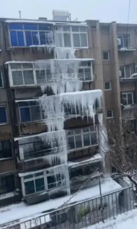 辽宁鞍山一居民楼挂“冰瀑”,社区回应