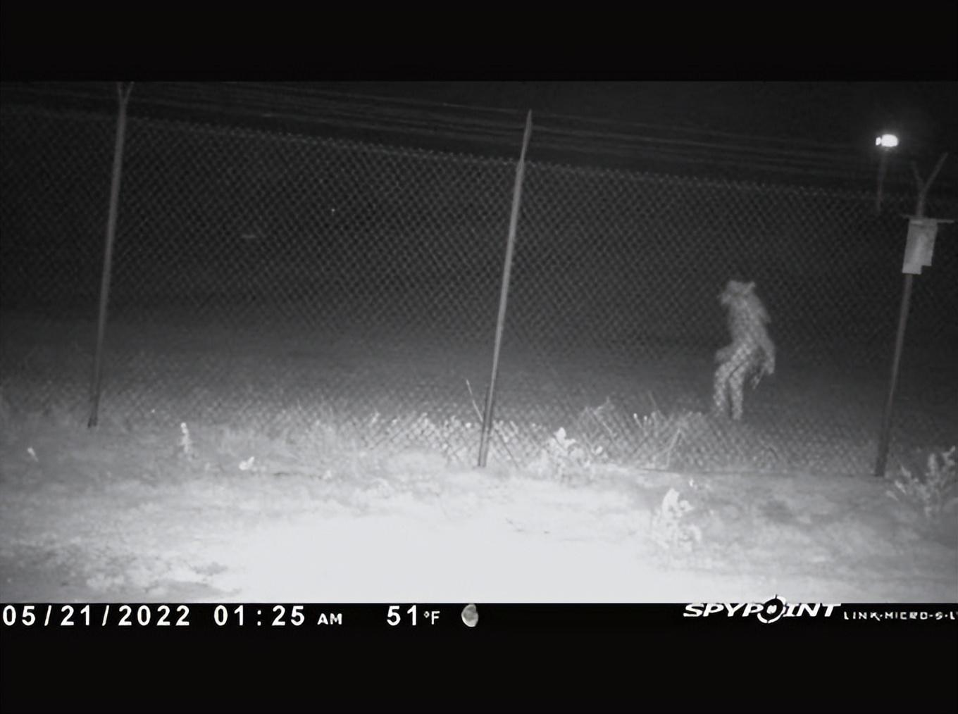 园方表示,动物园工作人员在随意查看近期监视器画面时发现这张惊人影像,并称该生物只在附近散步,并未进入动物园内。